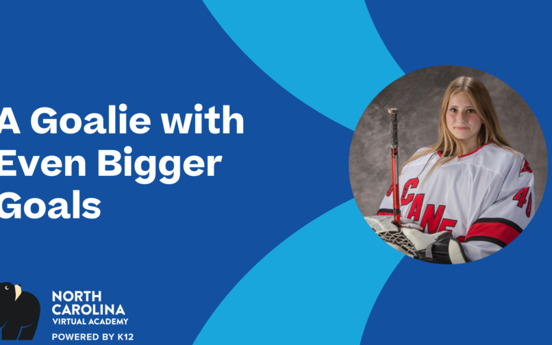 For eighth-grader Lillian, hockey isn’t just a sport: it’s a way of life. A student at North Carolina Virtual Academy (NCVA), Lillian is a dedicated goalie who travels nearly every weekend to compete at a high level, all while keeping up with school through a flexible online learning environment.